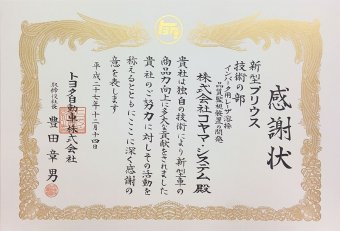 トヨタ自動車株式会社よりプロジェクト表彰されました。 2015年12月14日(月) プレスリリース トヨタ自動車株式会社の新型「プリウス」プロジェクト表彰にて、当社は「技術の部」において表彰されました。 同賞の受賞は、インバータ用レーザ溶接における品質監視装置の開発が高く評価されたものです。 新型プリウス記念式典の様子(外部リンク)
