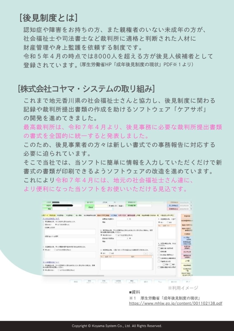 「ケアサポ」後見制度支援ソフトウェア